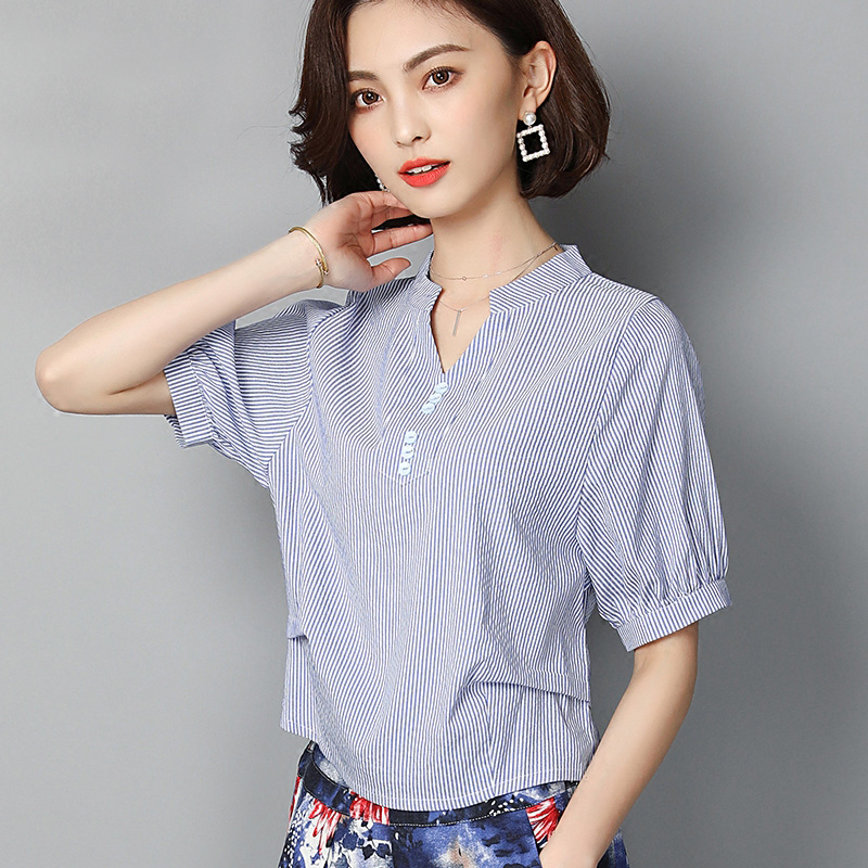 半小時前【新品超值活動 限時搶購】2020新款夏季V領條紋寬松短款襯衣,超值優惠!單件低至NT$307!期到即止 - 【買一送一】任選2件 僅需NT$1200,單件低至600